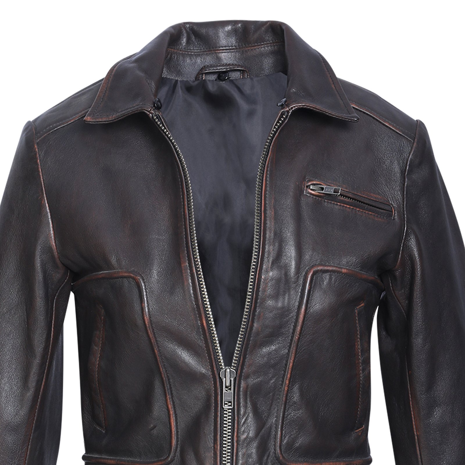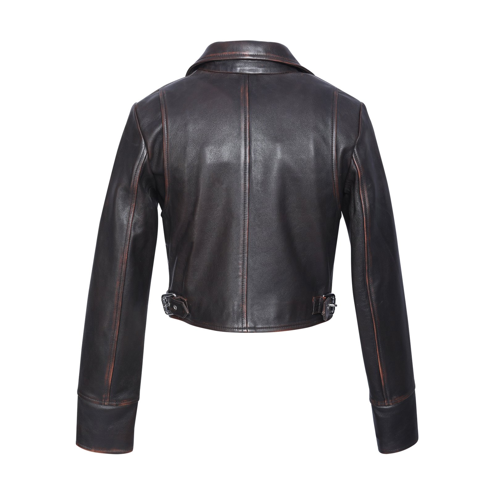 Leather soft to touch and of superior quality, front zip, fur collar, treated leather, three front pockets