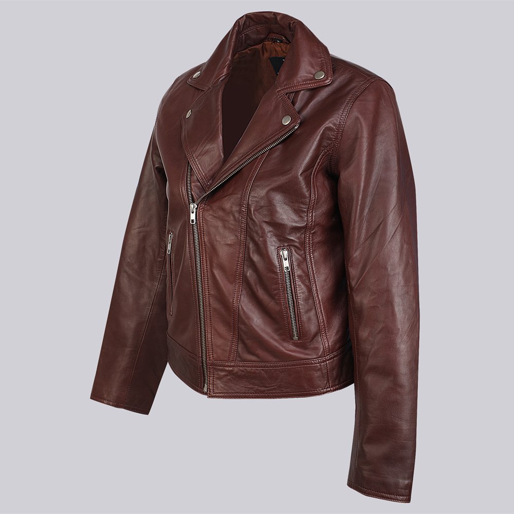 Leather soft to touch and of superior quality, zipper closure in front, fitted silhouette, two zipped cuffs, straight hem, fine stitching